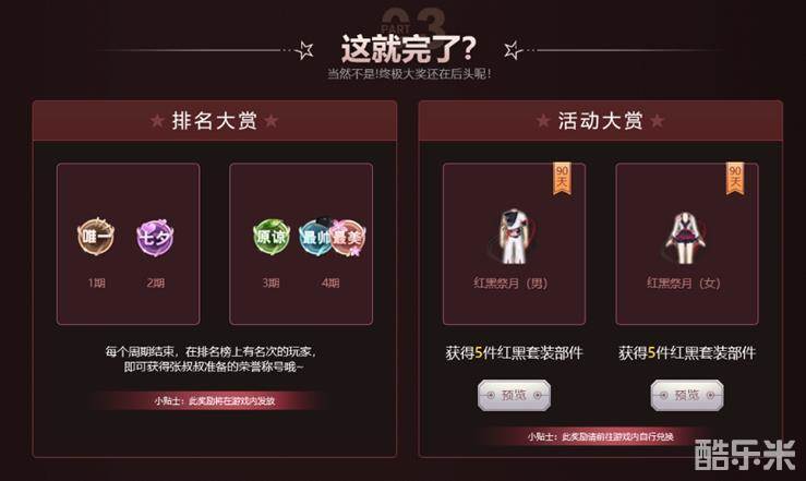 本次邀请赛需要在端游参与,每个周期有不同的主题,周期结束后,在排名榜上有名次的玩家,即可获得张叔叔为你准备的荣誉称号哦,参与搭配评选点赞还能获得全部红黑套装部件!