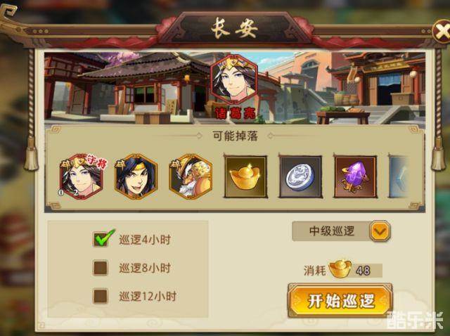从登录签到中获得了第一个红将之后,咱们就有有“碗”了~接下来就是拿着这个碗,去烽火连城里要源源不断的碎片。方式很简单,攻占城池后,就可以派你的红将去城池里巡逻(需要消耗一些元宝或者酒,看你选择啦),巡逻结束后能够获得武将碎片,其中就有几率掉落你派出的红将碎片。反正我的诸葛亮自打出生,一直就住在长安了(笑