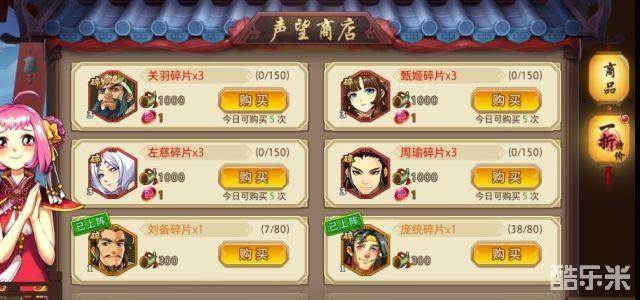 人品的证明!神将商店有很低的几率刷出红武将碎片,看到了可以买几片留念。