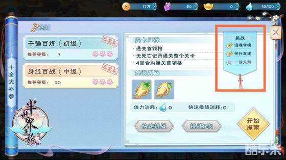 但如果是快速挑战剧情副本,只会增加冒险经验,不会增加伙伴经验。伙伴经验将转换为人参返还玩家。快速挑战5次普通剧情副本消耗25体力,可获得20人参宝宝;快速挑战3次困难副本消耗30体力,可获得24人参宝宝。