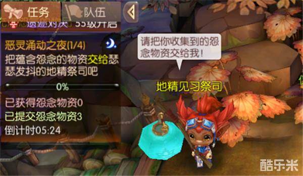 在这一阶段,需要在事件场景内采集“充满怨念的物品”,交给地精见习祭司。进度条将随场景内所有玩家的提交物资数量增长,当进度条增长到100%或倒计时结束,本阶段结束,发放阶段结算奖励,事件进入下一阶段。