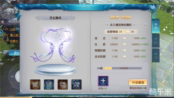 坐骑和角色一样也有等级,玩家可以消耗坐骑培养丹提升坐骑等级来增加自身属性,当坐骑达到一定等级之后,更有强大的技能解锁。
