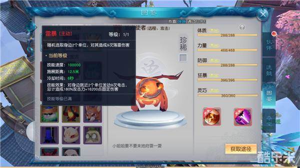 定位是远程爆发,因此属性里力量和狂暴的资质比较突出。主动技能会对附近的2名敌人施放9次落雷,造成巨额伤害;被动技能是地府使者攻击时有50%的几率定身敌人2秒,配合主动技能的话能大大提升触发概率;同时主人获得生命、法术防御和命中的属性加成。