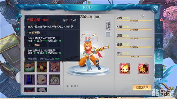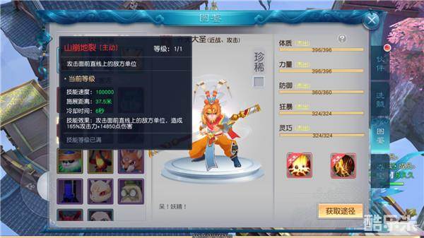 定位是近战攻击,体质、力量和防御的资质都很不错,属于能抗能打的类型。主动技能能对直线上的敌人造成伤害,很纯粹的一个伤害型技能;被动技能是大圣的攻击有30%几率降低敌人40%的护甲,对物理防御高的敌人有奇效。同时主人获得攻击、生命和物理防御的属性加成。