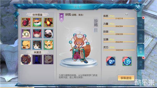 久居九黎野的妖狐,从父母被赤罗门抓走后的那天起,脸上再无笑容,因为复仇的原因,它在游戏里的定位是个暴力远程输出。主动技能狐火可以攻击敌方及其周围的目标,是个大范围的AOE技能;被动技能弱化可让妖狐攻击时有30%概率降低敌人的防御力,而且上阵时给主人增加攻击力、法术防御和命中的buff,如果你的角色是个暴力输出的话,搭配妖狐能让输出更为爆炸。