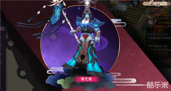 黑无常是属于“不死”类型的“珍奇”品质灵兽,它的初始技能为“死也无常”与“阴司锁命”,其中死也无常作为天赋主动技能,可以向敌人挥舞铁棒,对敌方单体造成法术伤害,并有一定几率附带缚魂效果。缚魂期间无法被复活。而阴司锁命作为另外一个天赋主动技能,可以对敌方三个单位造成法术伤害,并且有一定几率附带锁链效果。