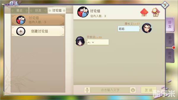 除了聊天,还可以向好友发送道具、灵兽,聊一聊彼此间对道具或灵兽的看法,还可以分享名片,多结识其他好友。山海内的社交系统,可以让各位大人彼此之间更好的交流,不再错过彼此的消息。另外,如果有好几个志同道合的朋友想要共同聊天,没有问题,在好友栏里的讨论组中,新建一个讨论组就可以把大家聚集在一起进行交流啦!