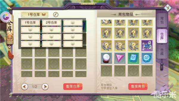 仓库是游戏内为各位大侠存储暂时用不到的物品的一个地方,各位大侠可以在背包里找到仓库的入口按钮。