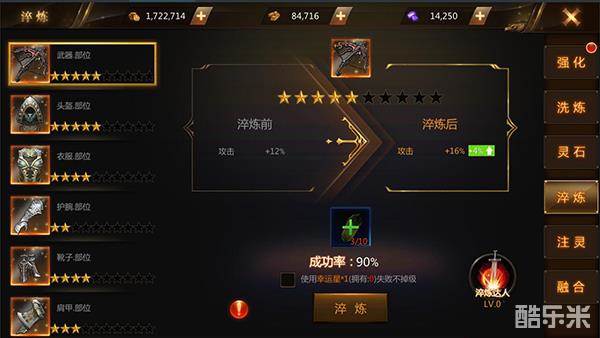淬炼系统是整个锻造系统最为核心的部分,通过淬炼可以按照百分比提高装备属性,注意是百分比,这可是非常大的一个加成。淬炼需要消耗一定数量的淬炼石,并且有一定几率掉级,如果希望不掉级,就要额外使用幸运星确保。满足淬炼条件后还能激活淬炼达人的效果,全面提升自己的基础属性。