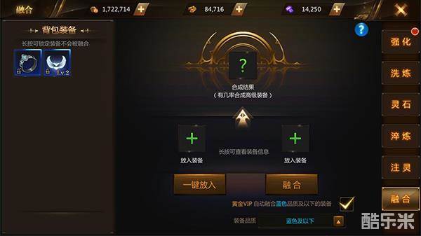装备融合可以将自己多余的两件装备进行融合,融合可能会获得神装碎片,用于兑换其他装备,也可能会融合出一件更高品质的装备,融合是必定成功不会失败的,因此怎样都不会亏,此外,其他系统装备也可以进行融合,充分运用多余的装备来提升自己吧。