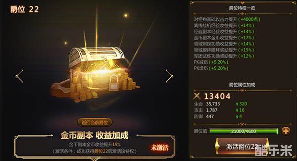 成功挑战秘境后还能获得爵位值,可以用于激活爵位,爵位等级越高,带来的爵位特权和战力加成也越多,同时还能增加各个副本的收益,是整个游戏中非常重要的主体之一。