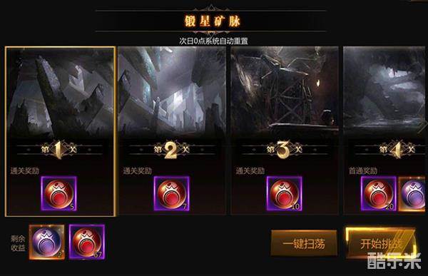 锻星矿脉是《主宰之王》中获得饰品升阶石的重要来源,提升饰品的等阶,增加玩家属性,锻星矿脉一共5关,会随战力的提升而开启新的关卡。挑战完副本后满足战力条件还可以对当前关卡进行升级,升级后会立即重置副本,可以再次挑战。