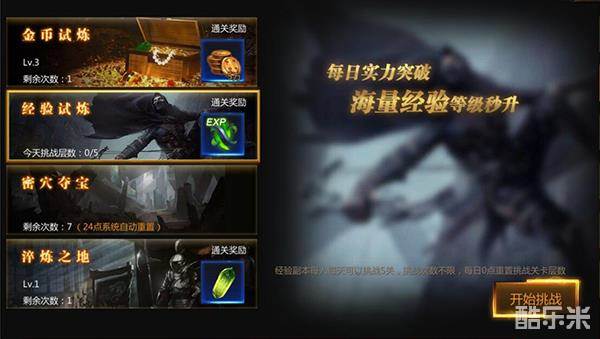 经验试炼每天重置,一共有5层,每天只能通关一次,获得海量的经验提升等级,如果第一次没有通过5层,那么退出后还可以继续,直到5层全部通关就无法再进入了。