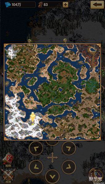 点击右下角的地图可以看到整个地图的缩略图,并且知道当前自己的坐标,地图上有独立的小岛,可以通过传送门到达,英雄无敌玩家对这个传送门一定不陌生,看看你能在地图上面遇到嘛