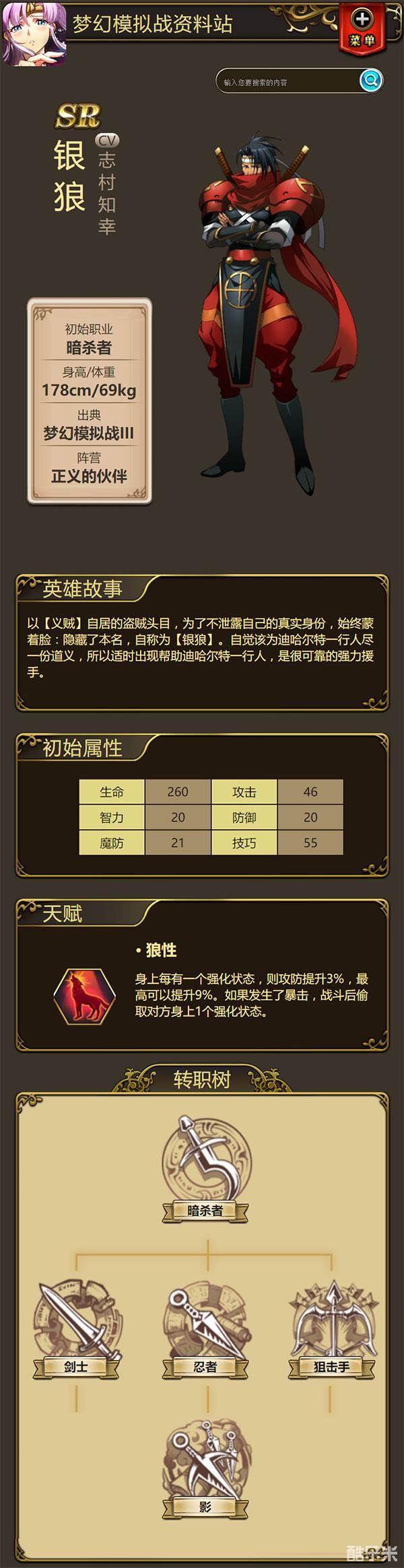 以【义贼】自居的盗贼头目,为了不泄露自己的真实身份,始终蒙着脸:隐藏了本名,自称为【银狼】。自觉该为迪哈尔特一行人尽一份道义,所以适时出现帮助迪哈尔特一行人,是很可靠的强力援手。