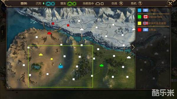 在每局开始时,最先需要做的事就是找到自己的出生城池,然后观察附近周围的城池布局以及玩家分布情况,确定优先进攻的城池路线,结合城池分布情况,分析未来发展可能会遇到的敌对情况,选择合理的外交关系,与其他玩家进行结盟。