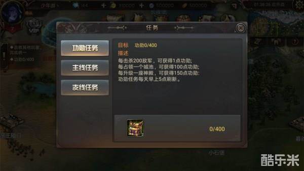 如图所示,占领城池可获得100功勋,升级神殿可获得150功勋,击杀敌军最少,因此,快速占领城池以及升级神殿则是获取功勋的不二之选。 也可以和其他玩家进行协商,反复来回攻击一座城池,城里都不布置兵力,用几十或者上百兵力进攻空城,占领后迅速撤出,用最小的面包消耗获取功勋。