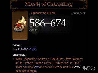 引导披肩,新传奇肩膀,引导旋风斩、急速射击、扫射、风雷冲、火蝠、奥术洪流、瓦解射线或冰霜射线时,你的伤害提高20-25%,受到的伤害降低25%