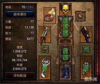 核心的装备是火热的梦魇套戒,梦魇套为唯一套装时,每一件远古提高800%伤害和4%防御,全身远古就提供800%*14=11200%和4*14%=56%减伤