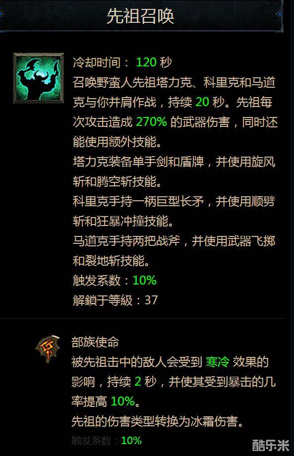 2.-蛮子的先祖之锤技能 可以 从队友携带冰晶中 获得10%暴收益