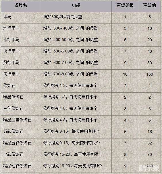 c)每获得1点势力声望,同时获得1点 荣誉值 ,但势力声望每减少1点,但 荣誉值 不减少。 荣誉值 的每次增加、减少对势力声望的增加减少没有影响。