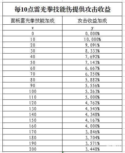 首先,雷光拳技能伤收益是递减的