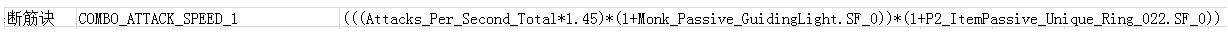 如数据挖掘中此条,APS指每秒攻击次数,Monk_Passive_GuidingLight指奔雷被动,P2_ItemPassive_Unique_Ring_022在数据挖掘中指千飓2件套。