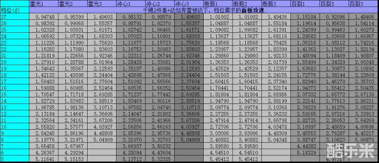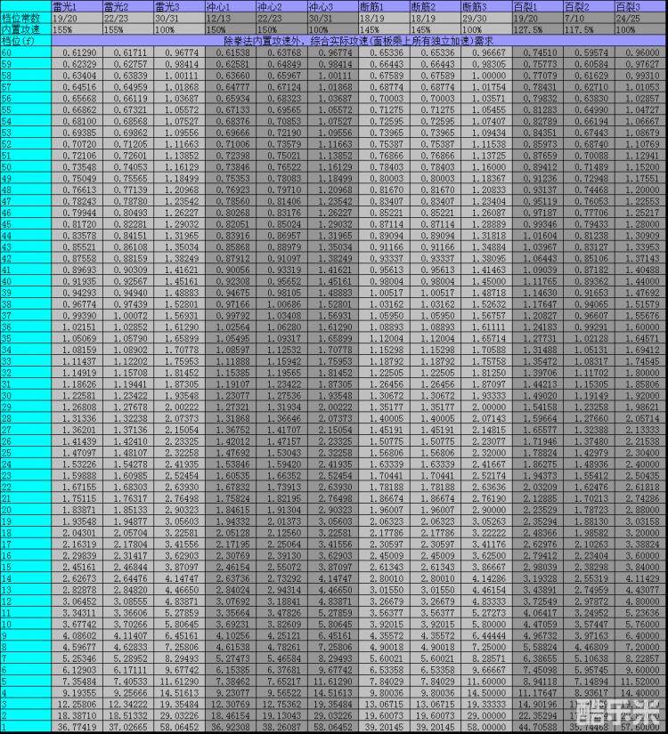 此表最有价值的部分。其实也就是最上面两行给出的拳法档位常数与内置攻速