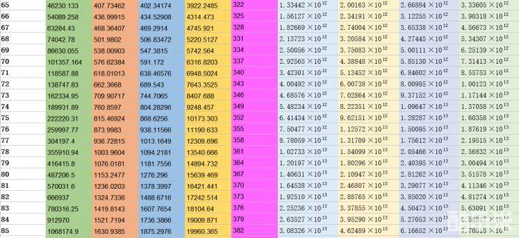 我们专注于经验的加成表(左边为层数,右边为经验放大系数)