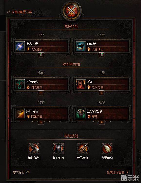 核电蛮技能与主流鱼叉辅助蛮区别:将前文提到比较鸡肋的大地践踏换成屠戮,旋风符文选择风卷残云即可。
