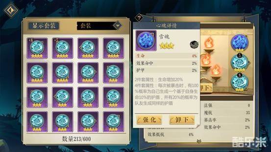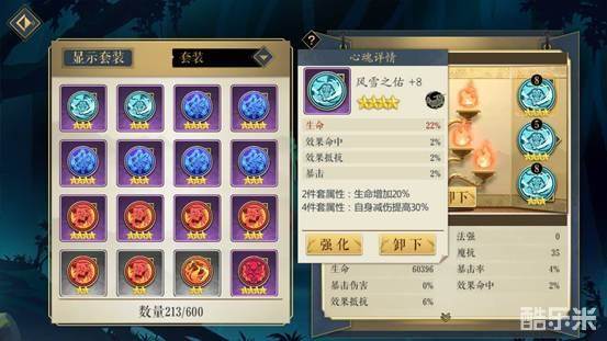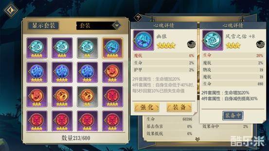 选择雪魄四件套,这里考虑的一个重要因素是雪魄四件套产生暴击时,100%生成一个自身生命10%的护盾,还有20%概率为队友加一个一样的护盾。而司空红月最大的特点就是血厚,这样的四件套再配一个20%生命加成的二件套,适当强化心魂后,达到15W+左右的血量,那么每次这个护盾就能抵抗1.5W左右的伤害,还是比较实用的。