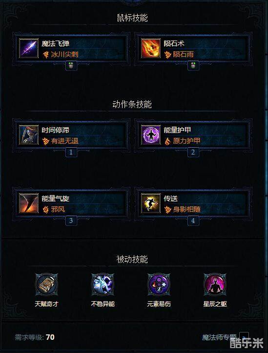 2、关于法师的被动技能,我就不吐槽了,有一种说法叫别人家的被动。到达70之后,你的全部被动将开启,你可以选择4个被动,我这里只介绍几个有用的被动(排名不分先后):