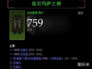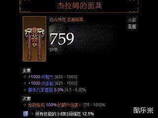 护腕:护腕可以选择奥吉德:毒伤+智力+体能+暴击,也可以选择豹人:毒伤+智力+体能+攻速+暴击。选奥吉德攻守兼备2件和3件效果都还不错,选豹人多一个攻速词缀位置!