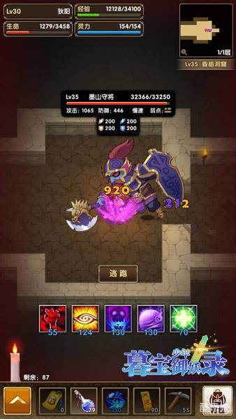 战斗为自动战斗。玩家只需要观察战斗状况,适时使用道具或技能即可,若是战斗情况不乐观,玩家也可以选择逃跑来保存生命。毕竟宝物或可贵,生命价更高。如果无法在墓室的迷宫中继续前行,玩家可以选择离开,在设置界面即可选择离开迷宫。但必须重点提醒的是,选择这种办法离开迷宫,那么玩家在进入墓室后的一切,都将随之失去,包括所得的经验、宝物、极品装备等等。