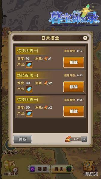 日常摸金是日替任务,是玩家每日必然要探寻的迷宫副本。玩家可从主界面或自由寻宝界面,使用寻龙诀进入副本获取资源。根据日期不同,掉落的珍贵资源也有所不同。因此,玩家要有所把握,重点刷当前所缺所需的资源。