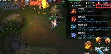 出完上述装备后,英雄的攻速可以提高到原始值的223%,并且增加“狂热”,“霜冻”和“连锁闪电”等附加效果。全套升级为紫色装备后,英雄的攻速可以提高到原来的362%,接近三倍!如果玩家选择的是黄忠的话,加上“二石之力”扩大攻击范围,简直就是狙击手与机关枪结合的怪兽!人头收割不能更简单!