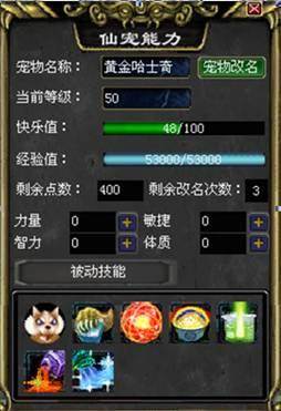 获得仙宠后可以使用鼠标右键点击仙宠头像召唤出仙宠,随着主人跟仙宠共同在线时间的延长,对于仙宠来说可以不断提升经验值,仙宠也象人物一样获得等级的提升;同时每10分钟的在线会降低“1点”仙宠的快乐值,当快乐值为0时仙宠就无法再召唤出来,因此必须给仙宠喂养“精灵口粮”来提高快乐值,每吃一个增加5点。