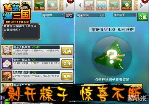 迎新版,庆佳节!《梦梦爱三国》端午节特别活动全民龙舟开启!在端午节期间,每天的8:00到22:00之间,玩家可以通过各种形式推动龙舟的进度,每推动一次就有一次活动奖励,当龙舟的进度达到特定距离时,全服玩家都能领取“前进礼包”,同时还有龙舟进度的个人排行榜,对于贡献最大的个人还有专属大奖呢!各种金卡碎片,游戏道具、金币等你来拿哦!