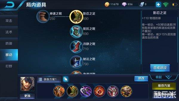 六神装推荐:红莲斗篷+影忍之足+暗影战斧+不死鸟之眼+反伤刺甲+不祥征兆