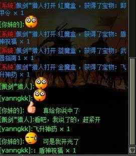 以上图为例讲解,首先看到了珍宝开出古笙,接着御花园钓到装备盒,我想大家应该知道御花园钓到盒子的概率很小,于是我就试着开了个装备盒,还不错,+20的,后面都跟着开,可以看到基本没开太差东西,装备盒也是墨子,总比指南1和麻纸强。而且出了飞升神药。