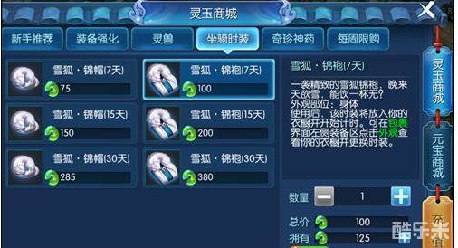 时装获取首先是使用灵玉进行购买,毕竟这是游戏的一大特色(坑钱点),玩家点击【商城】-【时装坐骑】,然后选择自己喜欢的时装购买,在点击【包裹】-【外观】进入衣橱,穿上自己所购买的时装。