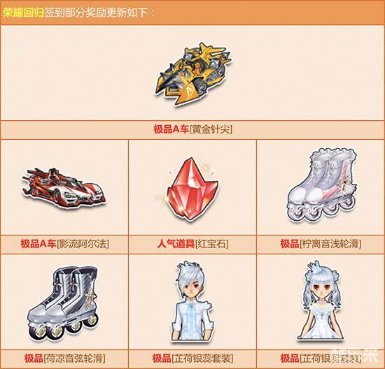 QQ飞车荣耀回归奖励更新,签到领极品A车黄金针尖!