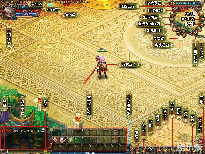 20.频道:可以选附近、区域、世界、私聊、队伍、家族、帮派、号角、喇叭等聊天频道