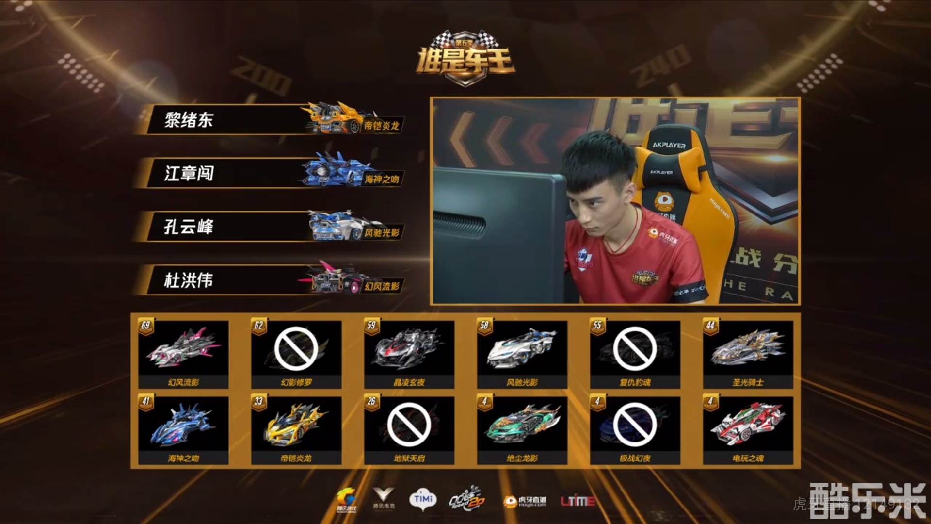 选车方面,黎绪东选择了帝铠炎龙,江章闯选择了海神之吻,孔云峰选择了风驰光影,杜洪伟选择了幻风流影。