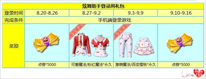 【8.20-9.16】每周登录游戏即可领取高额点券,还有可爱的魔法装,不可错过哟!