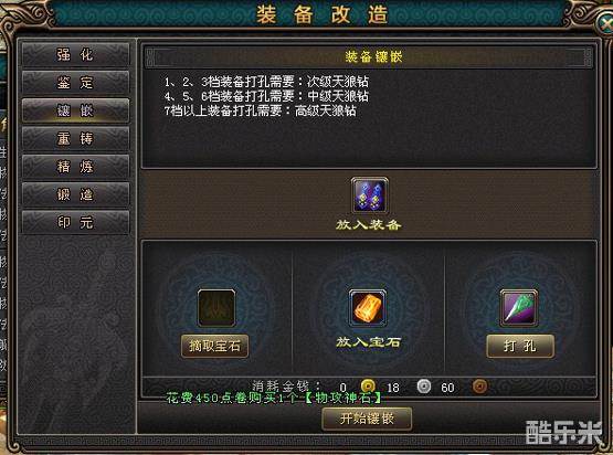 5.一件装备拥有多个凹槽的情况下,不可选择凹槽镶嵌,只能按照顺序自动从上至下镶嵌宝石;