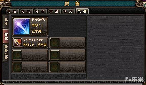 一只灵兽最多可以学习4个技能,所有灵兽技能最高可以学到2级。灵兽技能获得途径分别有:历练功勋兑换、参与国战任务、击杀世界BOSS、国战杀敌功勋与商城出售。