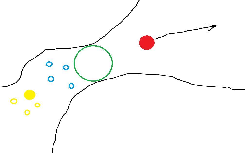 战术思路注:红色为玩家、棕色为小怪、黄色为精英金怪、蓝色为精英蓝怪、绿色为金轮阵、黑色为地形、十字为本人的特殊标记、箭头为行进方向。