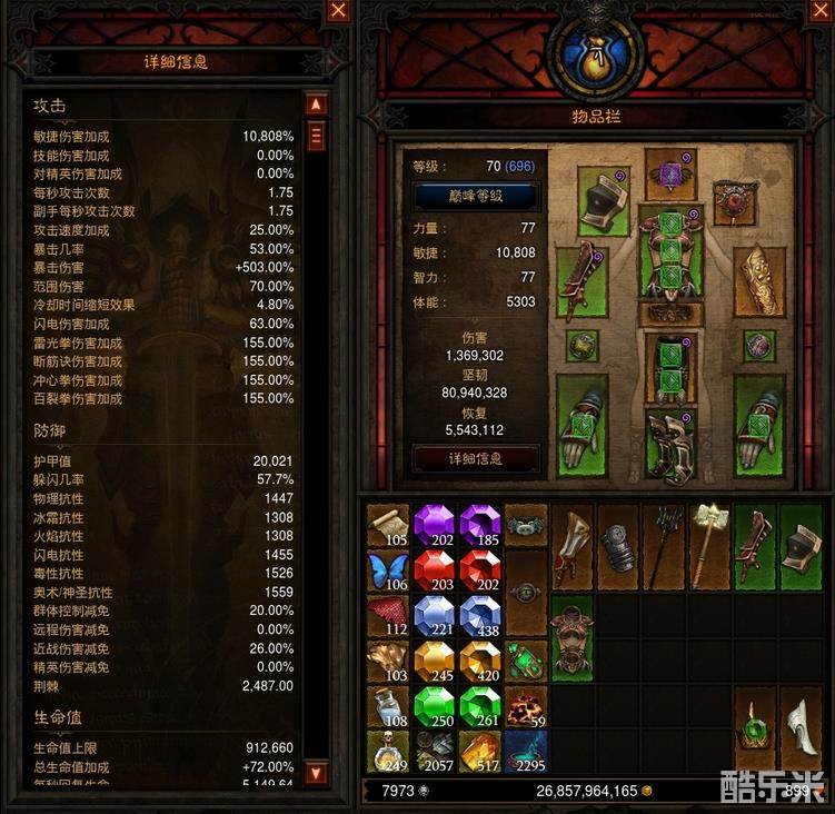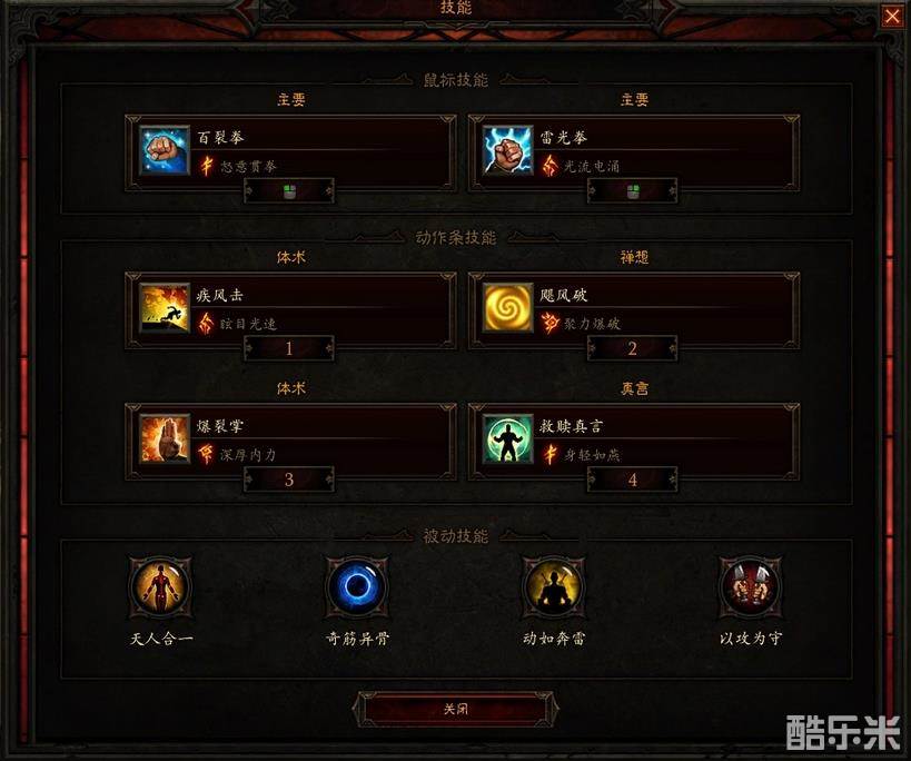 由于lz很懒而且手残,完全用不好黑人和光能灌注(总是cd到了忘记用,内力都空了才想起来你敢信),所以采用了2乌莲+内力爆裂的符文来保证内力,萃取古腕+寇马可(寇马可带碧蓝,也有说带怒雷配合命运好的,我受不了那滋滋声就算了),手套腰带副属性洗了冰冻,生存勉强还可以。各位习惯高cdr的可以不采用我这种办法,只要有双拳法的配合一样有惊人的伤害。