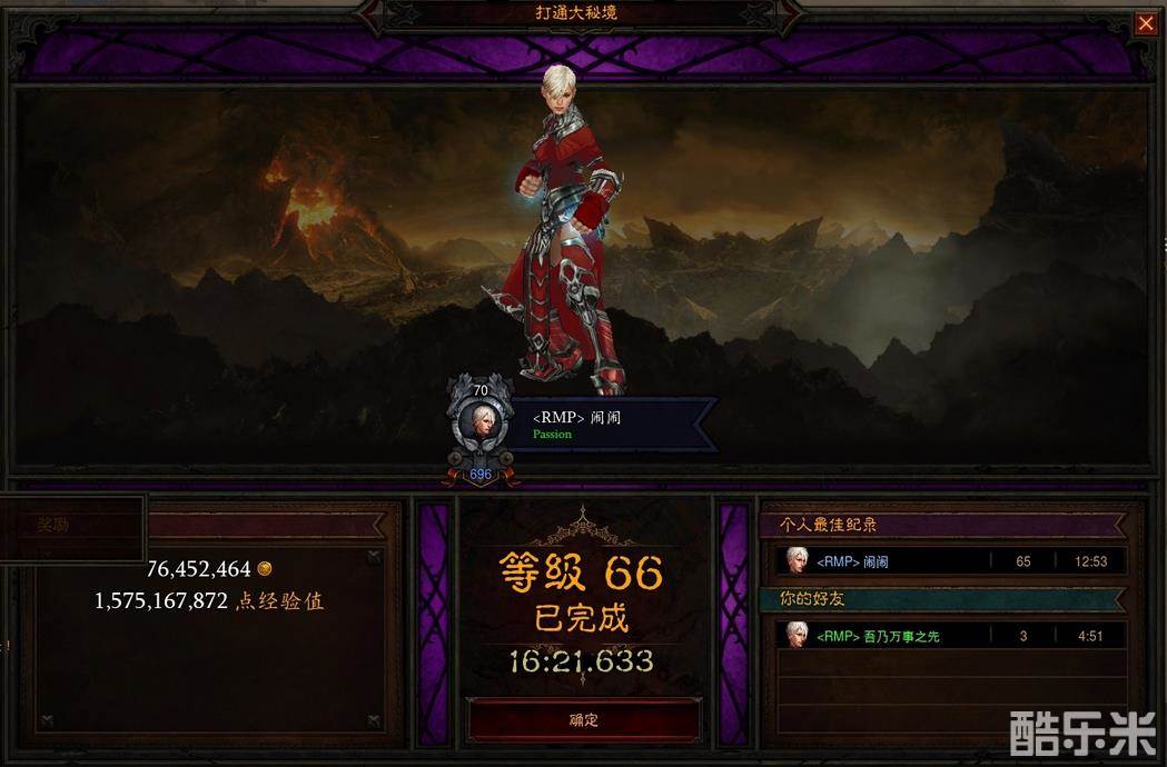 66层试了几次,最好的一次是16分21秒,boss花了2分钟。